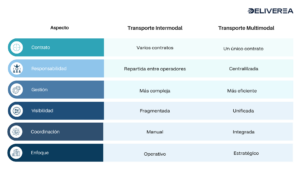 El transporte intermodal vs multimodal se diferencia principalmente en la gestión. El multimodal permite una optimización del transporte multimodal mucho mayor al centralizar la operación.